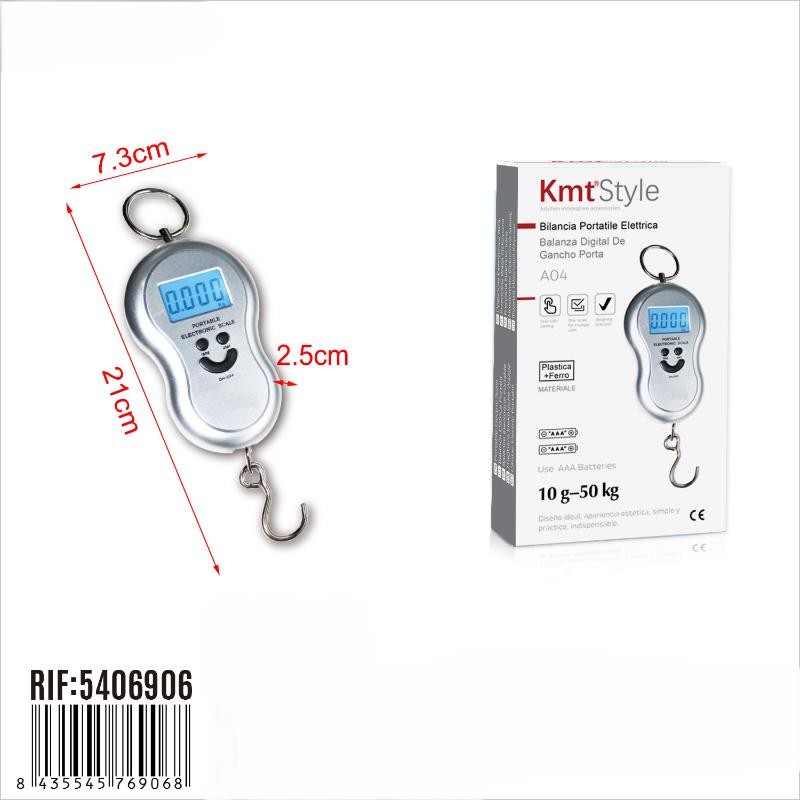 Compacta, prática e precisa, esta balança digital de gancho é a solução ideal para pesar malas, encomendas, mochilas, sacos e muito mais. Com um ecrã digital retroiluminado de fácil leitura, oferece pesagens rápidas e fiáveis com capacidade de 10g até 50kg.