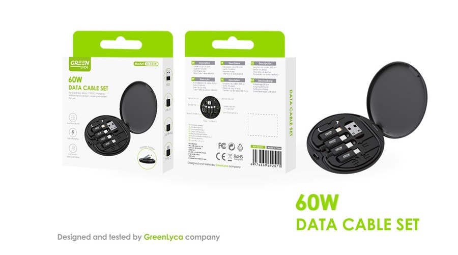 Esta caixa compacta e funcional apresenta-se como uma solução prática e completa para quem necessita de versatilidade no carregamento e transferência de dados entre diferentes dispositivos móveis. Fabricada em plástico preto de elevada resistência, combina simplicidade, portabilidade e eficiência num único acessório.