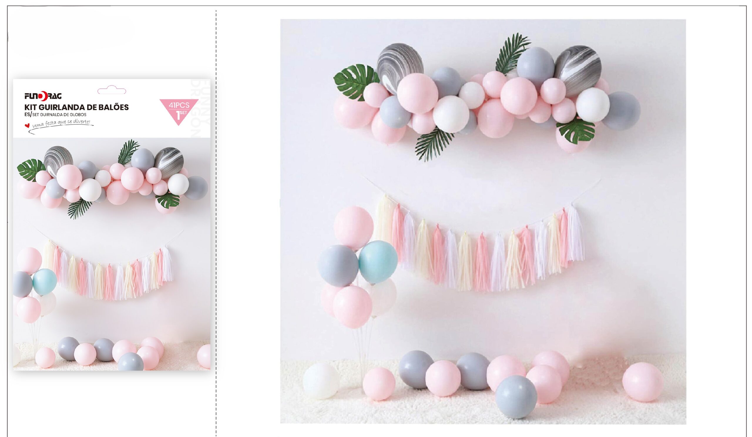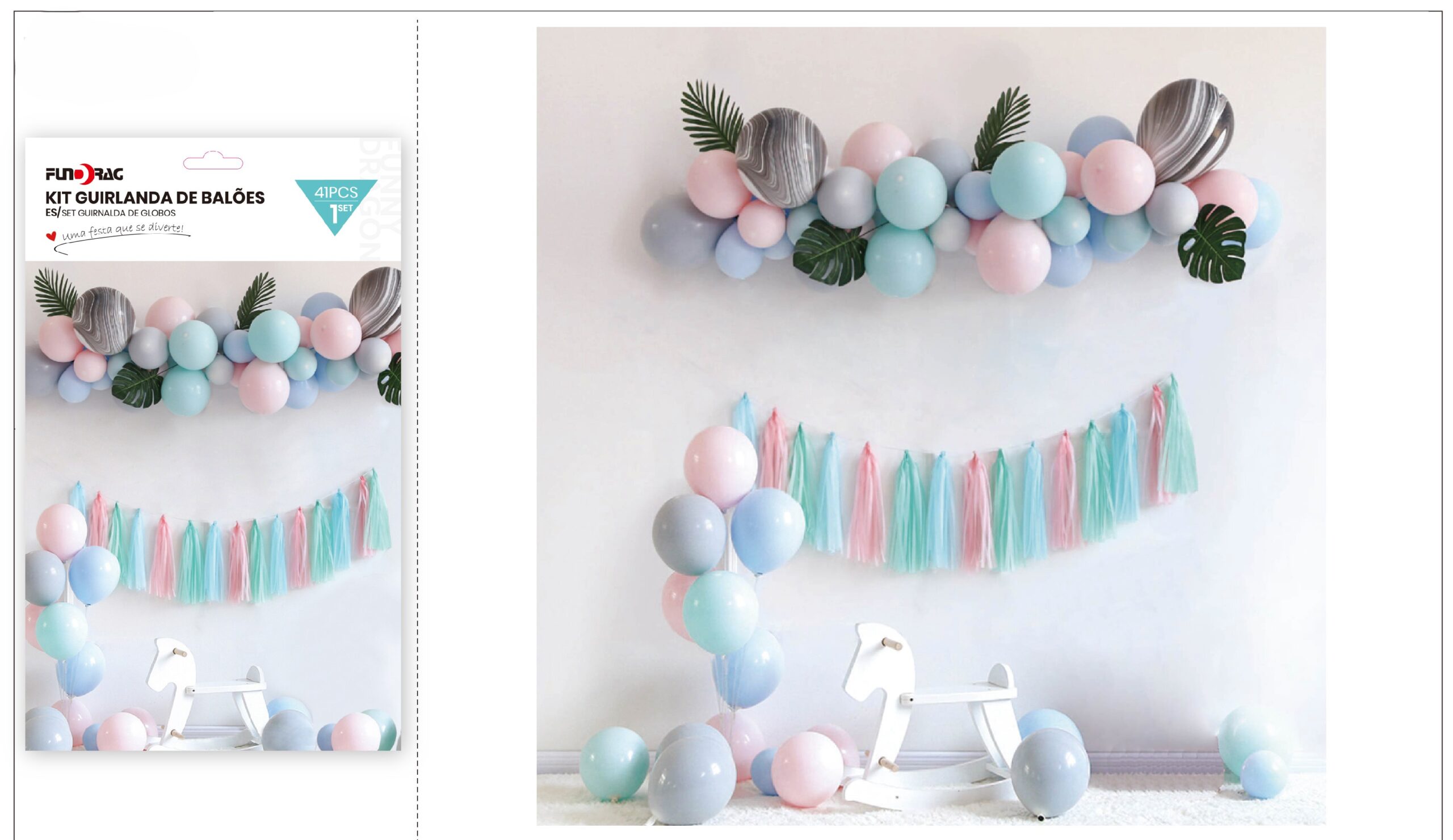 Ambos os kits são projetados para criar uma guirlanda de balões que serve como ponto focal em festas infantis, chás de bebê, aniversários ou outros eventos comemorativos.