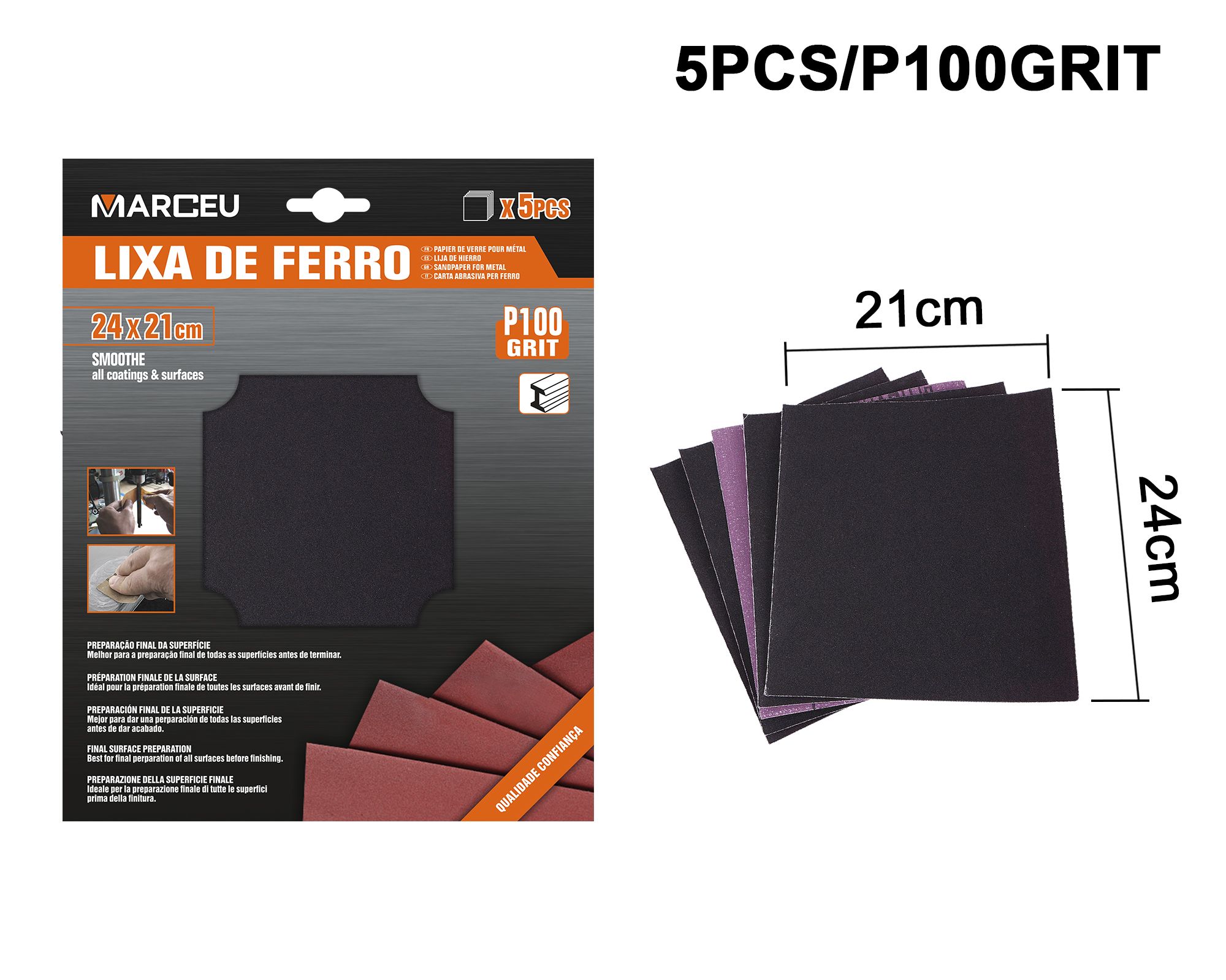 A Lixa de Ferro 24x21 cm é especialmente indicada para a preparação final de superfícies antes de aplicações como pintura, envernizamento, colagem ou outros acabamentos. Com abrasivo de alta resistência e suporte reforçado, esta lixa oferece desempenho superior em diversos materiais, como metal, madeira, reboco, plástico ou massa corrida.